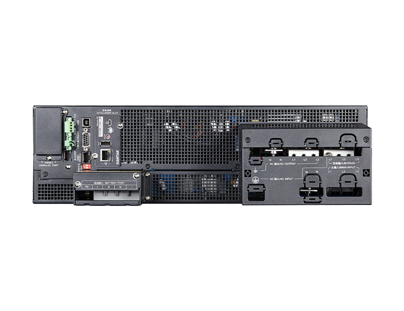 多种选配或者标配附件,包括手动维修旁路、可扩展电池包、并机组件、通信监控卡等,适用于不同等级的方案应用。