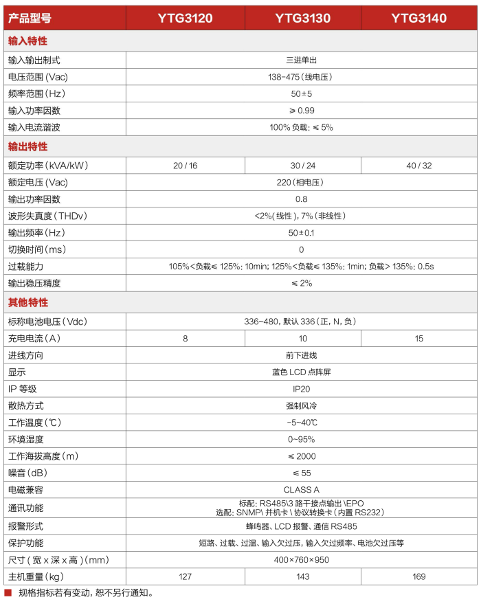 产品规格: YTG系列三进三出UPS&&20/30/40kVA
